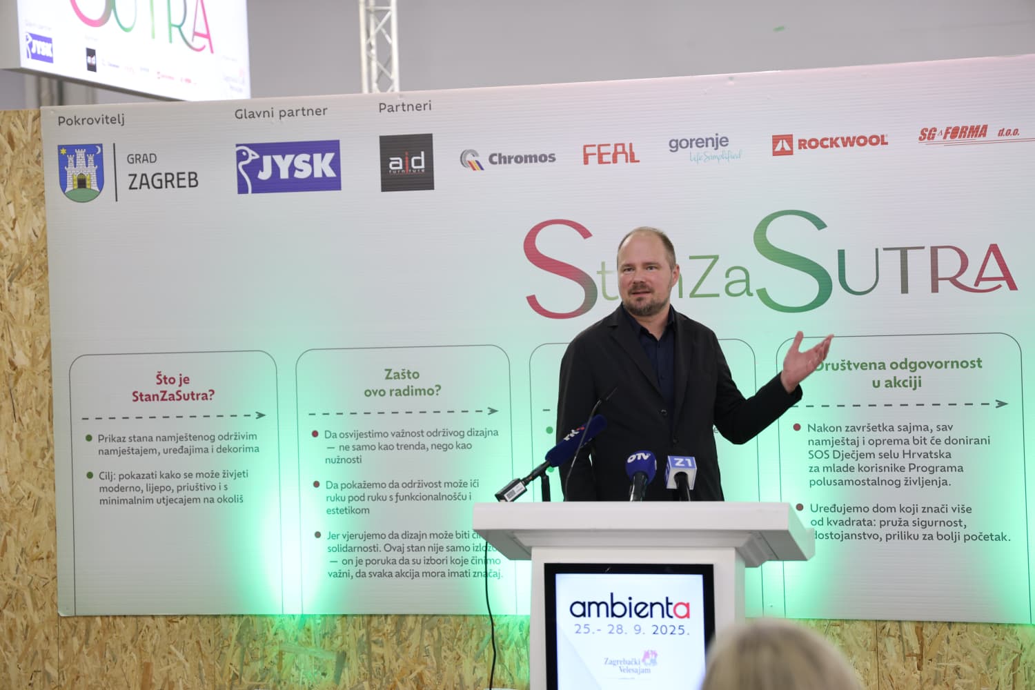 Prvi put na Sajmu će biti predstavljen projekt StanZaSutra – potpuno opremljen, održiv i pristupačan stan koji će nastaviti živjeti i nakon zatvaranja Sajma kada će sav namještaj biti doniran mladima iz SOS Dječjeg sela Hrvatska, koji u Novom Jelkovcu započinju samostalan život.