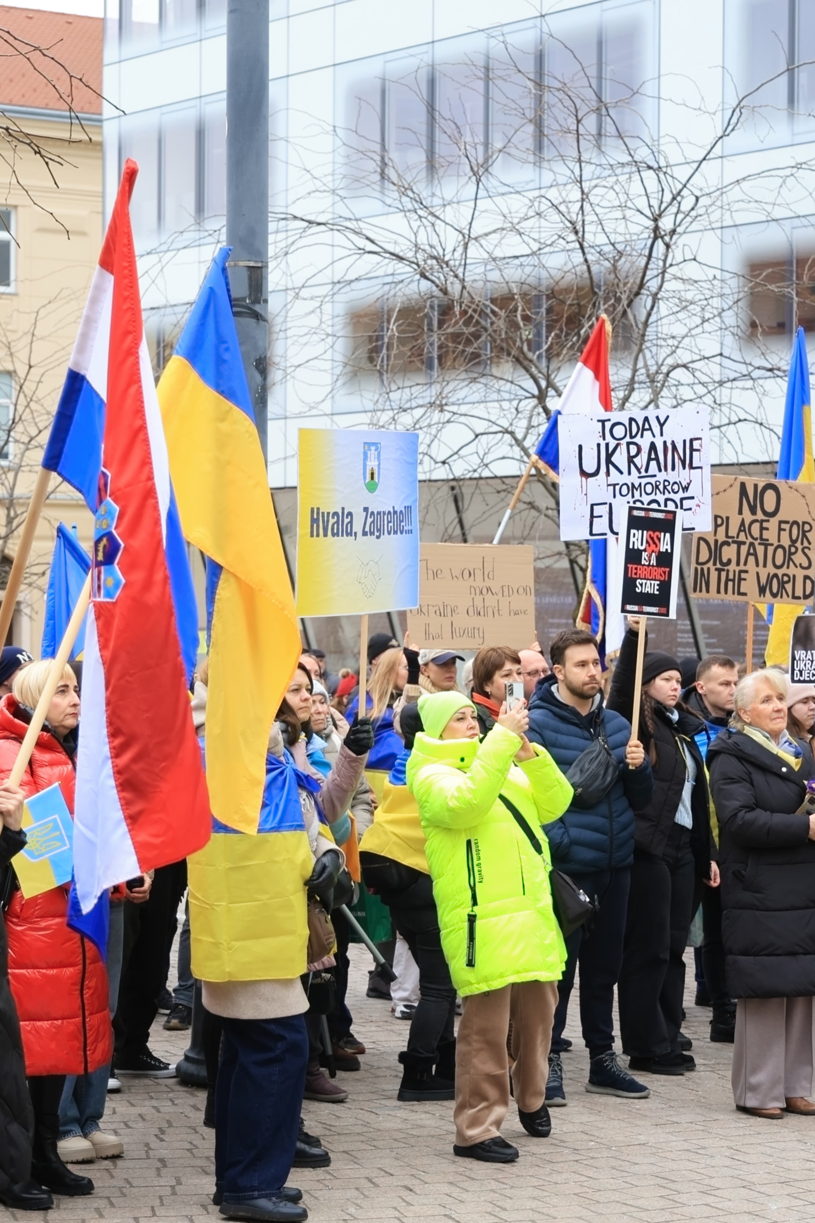 Povodom obilježavanja četvrte godišnjice početka ruske agresije na Ukrajinu, na Europskom trgu održan je skup podrške ukrajinskom narodu u organizaciji Grada Zagreba, Veleposlanstva Ukrajine u Republici Hrvatskoj i Ukrajinske zajednice Grada Zagreba.
