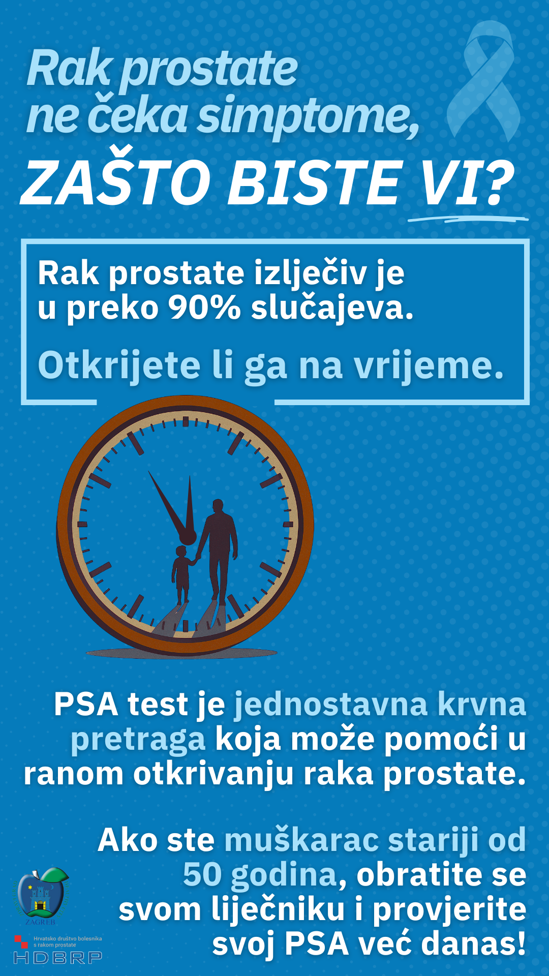 Čak 93 posto građana nikad nije čulo za PSA test, jednostavnu krvnu pretragu koja pomaže otkriti promjene na prostati u ranoj fazi, kada su šanse za izlječenje najveće. Budući da rak prostate u početnom stadiju često nema vidljive simptome, preventivni pregledi ključni su za rano otkrivanje i uspješno liječenje. Ako ste muškarac stariji od 50 godina i niste u zadnjih godinu dana provjerili svoj PSA, razgovarajte sa svojim liječnikom odmah jer vam to može spasiti život“, naglašavao je Velimir Korak, predsjednik HDBRP-a, dodajući da su strah i stigma i dalje smanjivali odaziv na preventivne preglede.