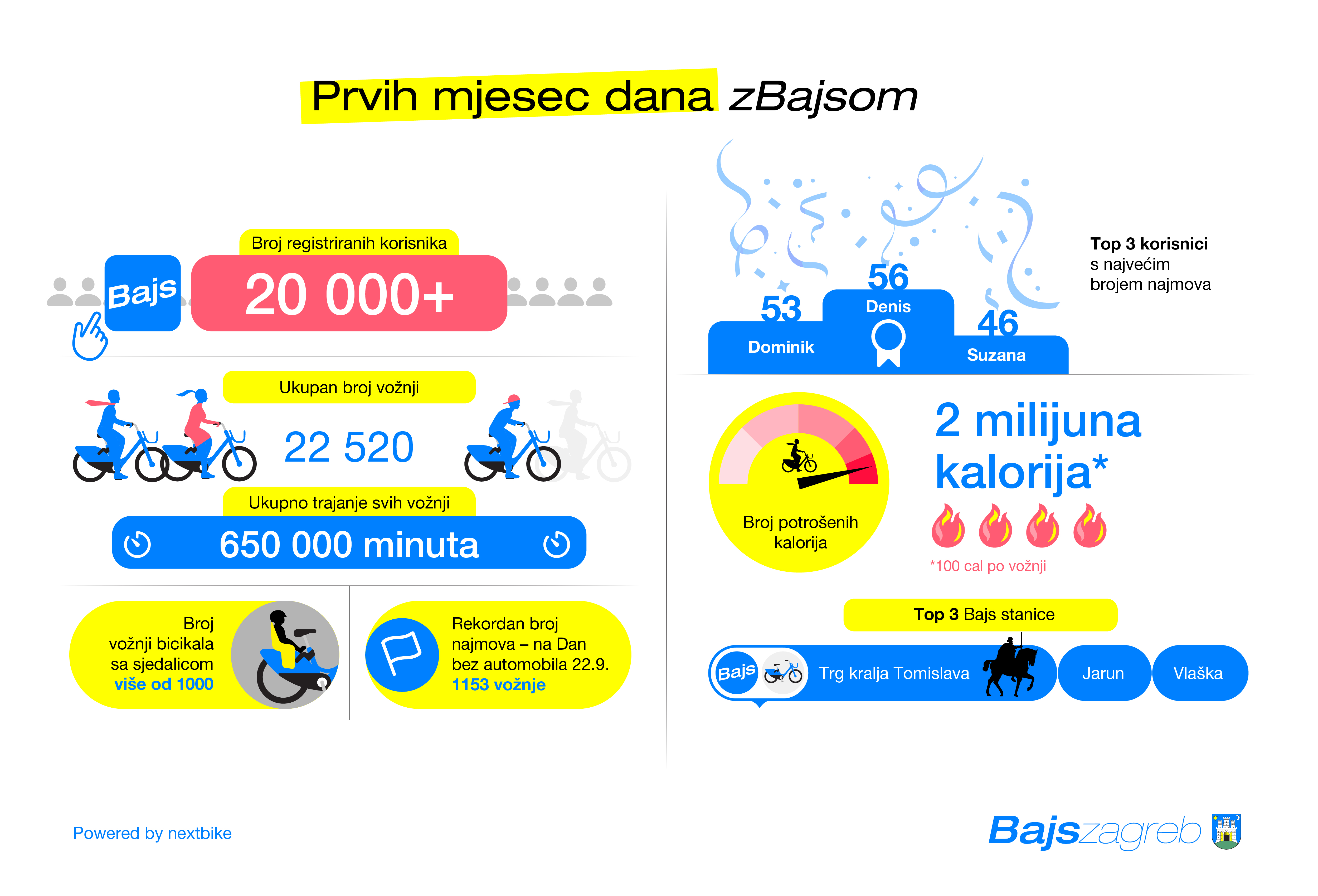 • Top 3 stanice u prvih mjesec dana: Trg kralja Tomislava (2.841 najam), Jarun (2.728), Vlaška (2.002)