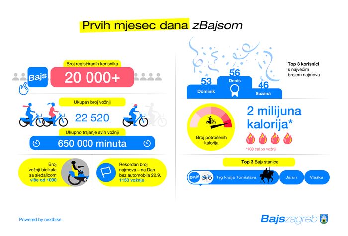 Nakon prvih mjesec dana sustav ima više od 20.000 registriranih korisnika. U 30 dana ostvareno je 22.520 vožnji, tijekom kojih su korisnici na Bajsu proveli više od 650.000 minuta i potrošili 2 milijuna kalorija. Na Europski dan bez automobila, 22. rujna 2025. godine, postavljen je dnevni rekord u broju najmova. Taj su dan zabilježena 1153 najma.