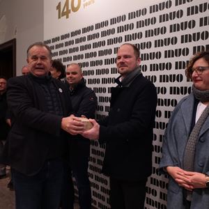 Ravnatelj je predstavnicima Grada i Ministarstva uručio po jednu staru originalnu ciglu spašenu iz šute nastale prilikom potresa, a predstavnici izvođača radova uz ciglu su dobili i originalan ključ muzejskih vrata, uz poruku ravnatelja – da ga što brže vrate!